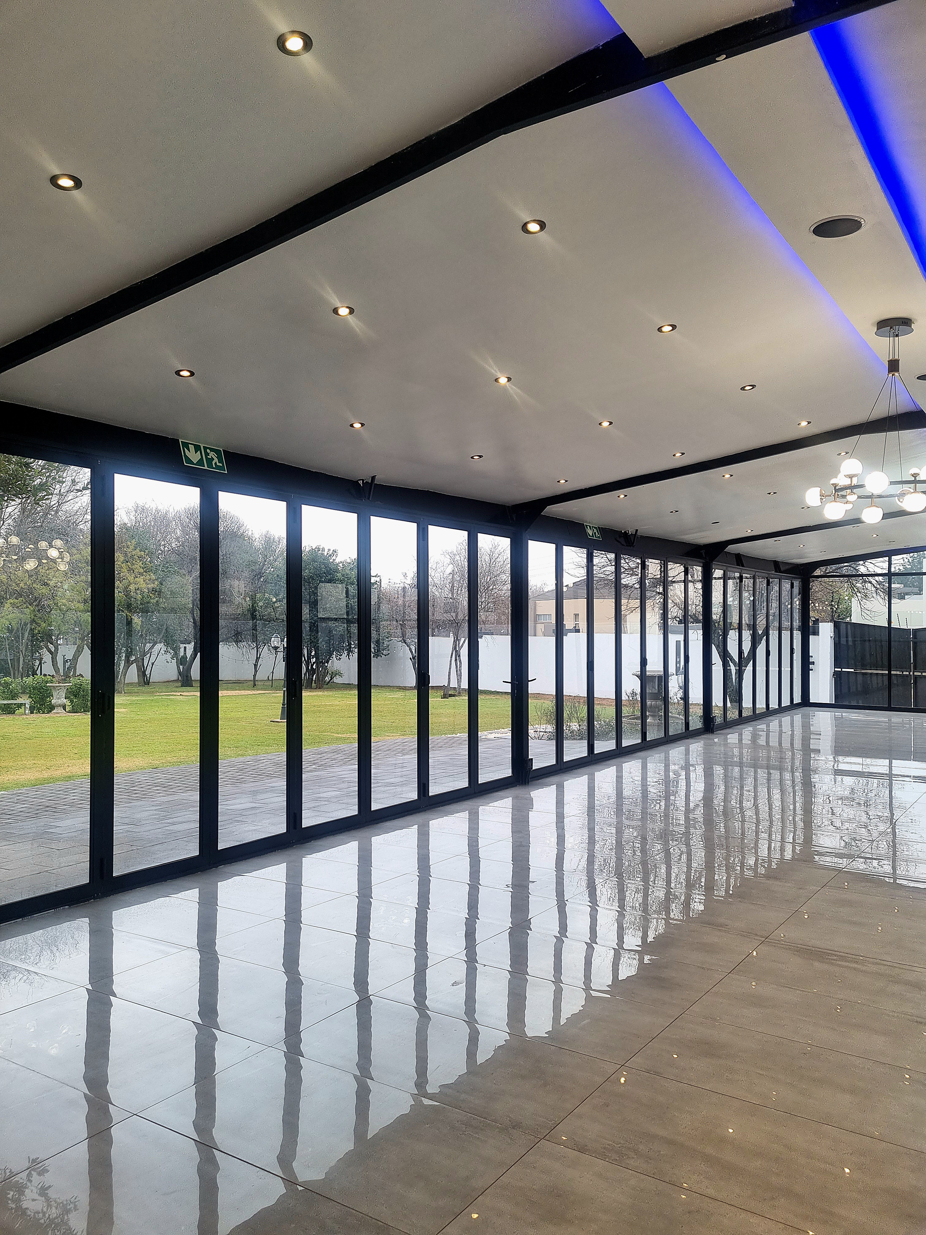 A stunning glass venue that blends strength with elegance. Aluminium glass frames capture natural light and panoramic views, creating the perfect setting for weddings, events, and celebrations.